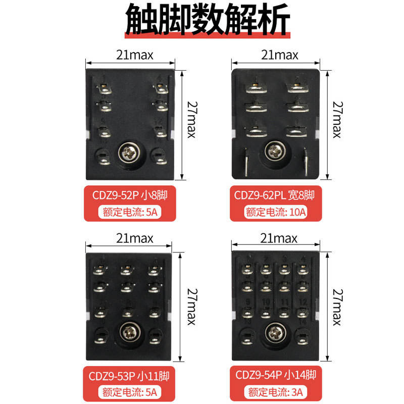 รีเลย์อิเล็กโทรแมกเนติกโซลิดสเตท Delixi รุ่น CDZ9-52PL รองรับไฟ DC24V/AC24V/12V/380V พร้อมไฟแสดงสถานะ 220V แบบปิดผนึก