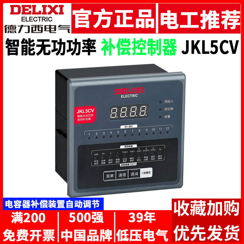 ตู้ควบคุมการชดเชยกำลังไฟฟ้ารีแอกทีฟอัจฉริยะ Delixi JKL5C-4-6-8-10-12 พร้อมตัวควบคุมอัตโนมัติสำหรับปรับค่าตัวประกอบกำลังไฟฟ้า