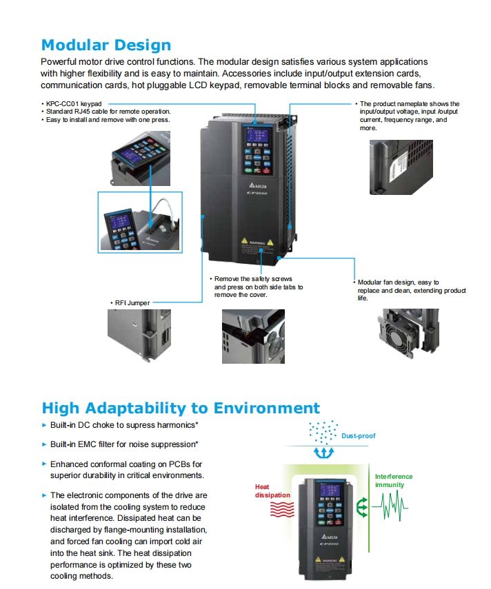 VFD370C43S-21 37 กิโลวัตต์ 380 โวลต์ IP20 NEMA 1 Type