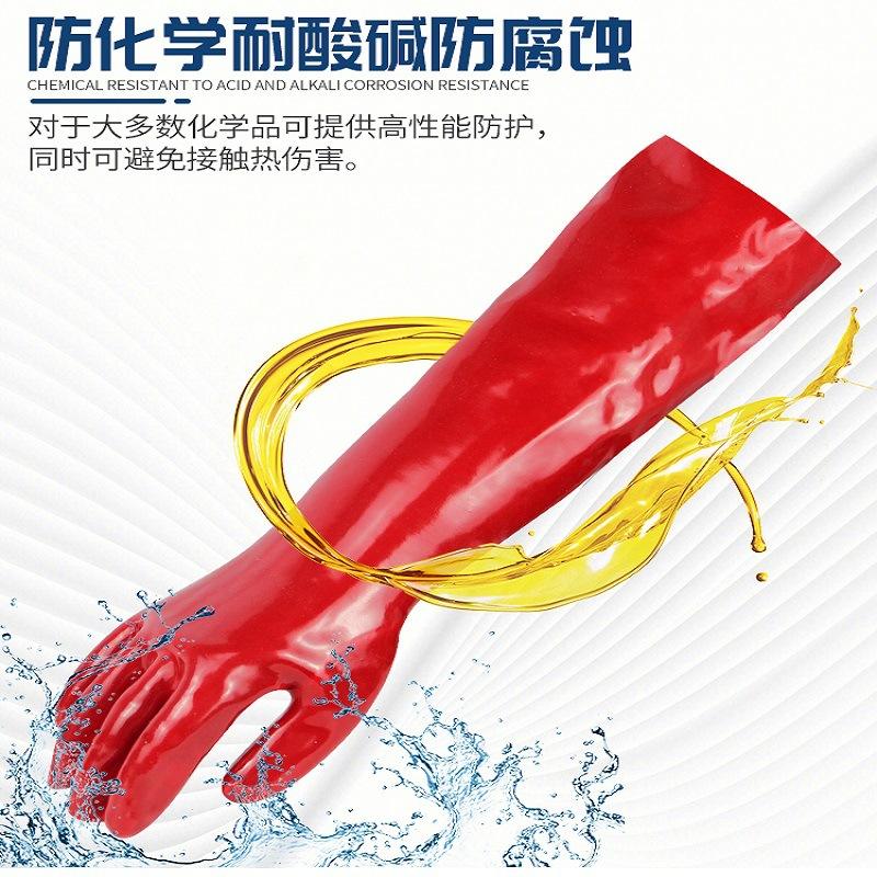 ถุงมือป้องกันสารเคมี PVC สีแดง 60ซม
