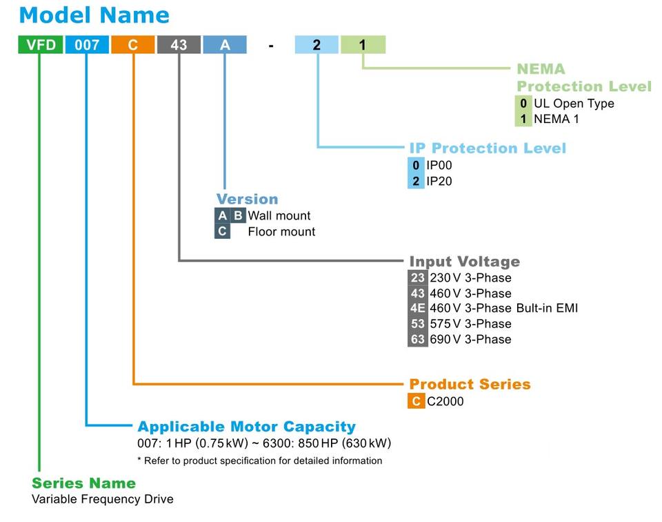 VFD750C43A-21 75KW 380V IP20 NEMA 1 แบบ