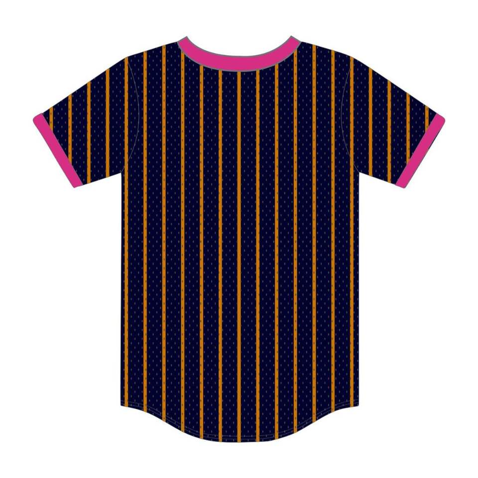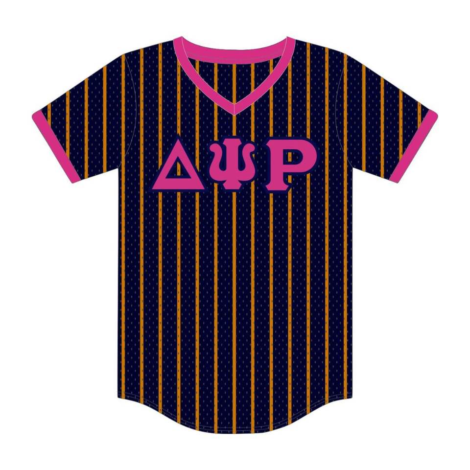 Delta PSI Rho เสื้อกีฬาเบสบอลสวมหัวลายทางหนังกองทัพเรือเสื้อยืดผ้าโพลีเอสเตอร์ตาข่ายคอวีพร้อมปักลายมีช่องว่าง