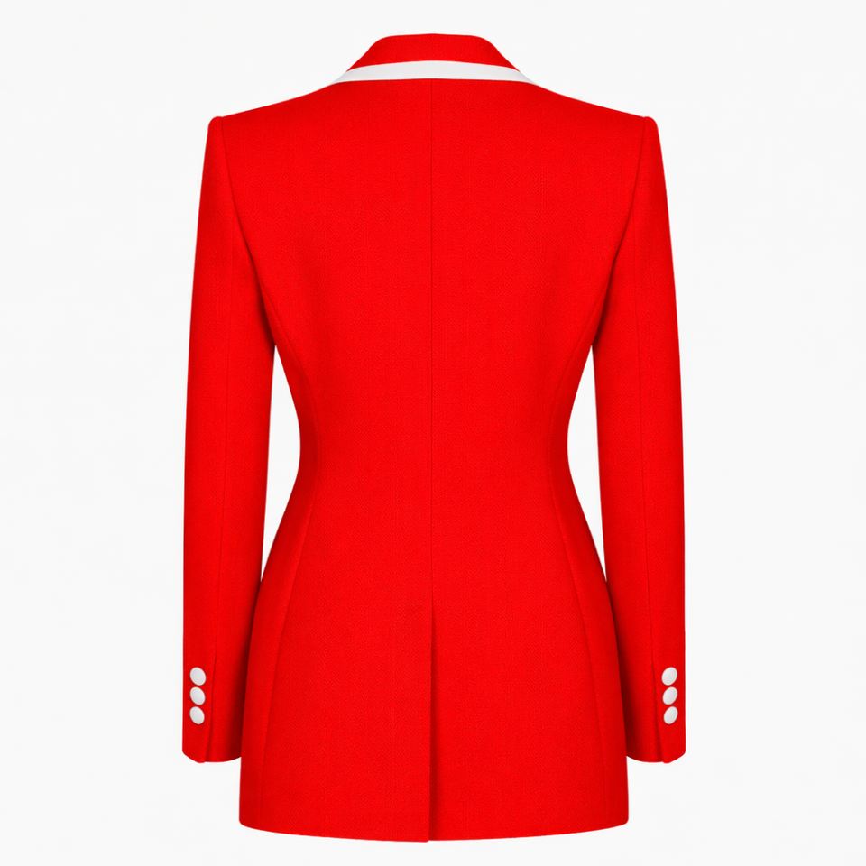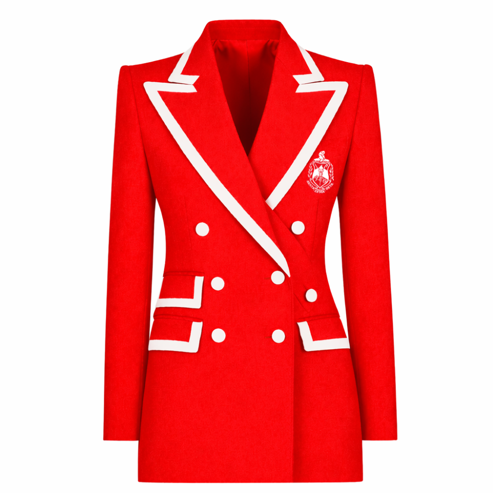 เดลต้า | ซิกมา | เสื้อเบลเซอร์ธุรกิจทรงดับเบิ้ลเบรสต์ Theta พรีเมียม ตัดเย็บอย่างประณีต ปกแหลม ทรงโมเดิร์น แจ็คเก็ตทักซิโด้สำหรับผู้หญิง