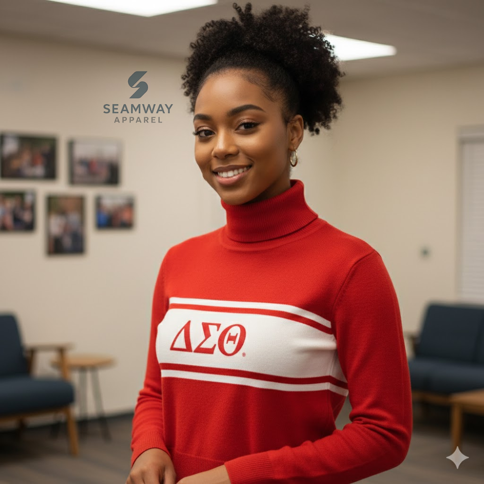 เดลต้า | ซิกมา | เสื้อสเวตเตอร์คอเต่า Theta Sorority สำหรับผู้หญิง เสื้อถักคอสูงลำลอง เสื้อคอเต่าแบบสวม เสื้อโปโลคอเต่า