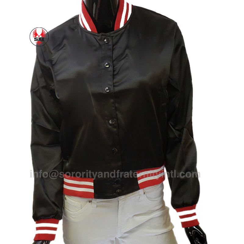เสื้อแจ็คเก็ตซาตินปักอักษรกรีก Delta Sigma แบบกำหนดเอง 100% โพลีเอสเตอร์ เสื้อแจ็คเก็ตเบสบอลแบบ Letterman Bomber