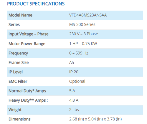 หมายเลขรุ่น:VFD4A8MS23ANSAA