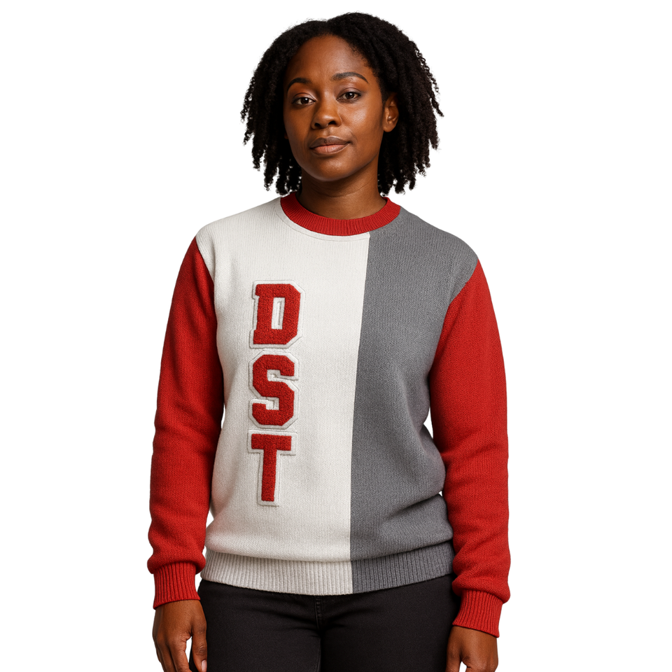 เสื้อสเวตเตอร์ถัก3โทนสีขาว Delta แนวกรีกเก้าชมรมปักกำมะหยี่เสื้อสวมหัวเสื้อแฟชั่นทันสมัยสำหรับฤดูหนาว