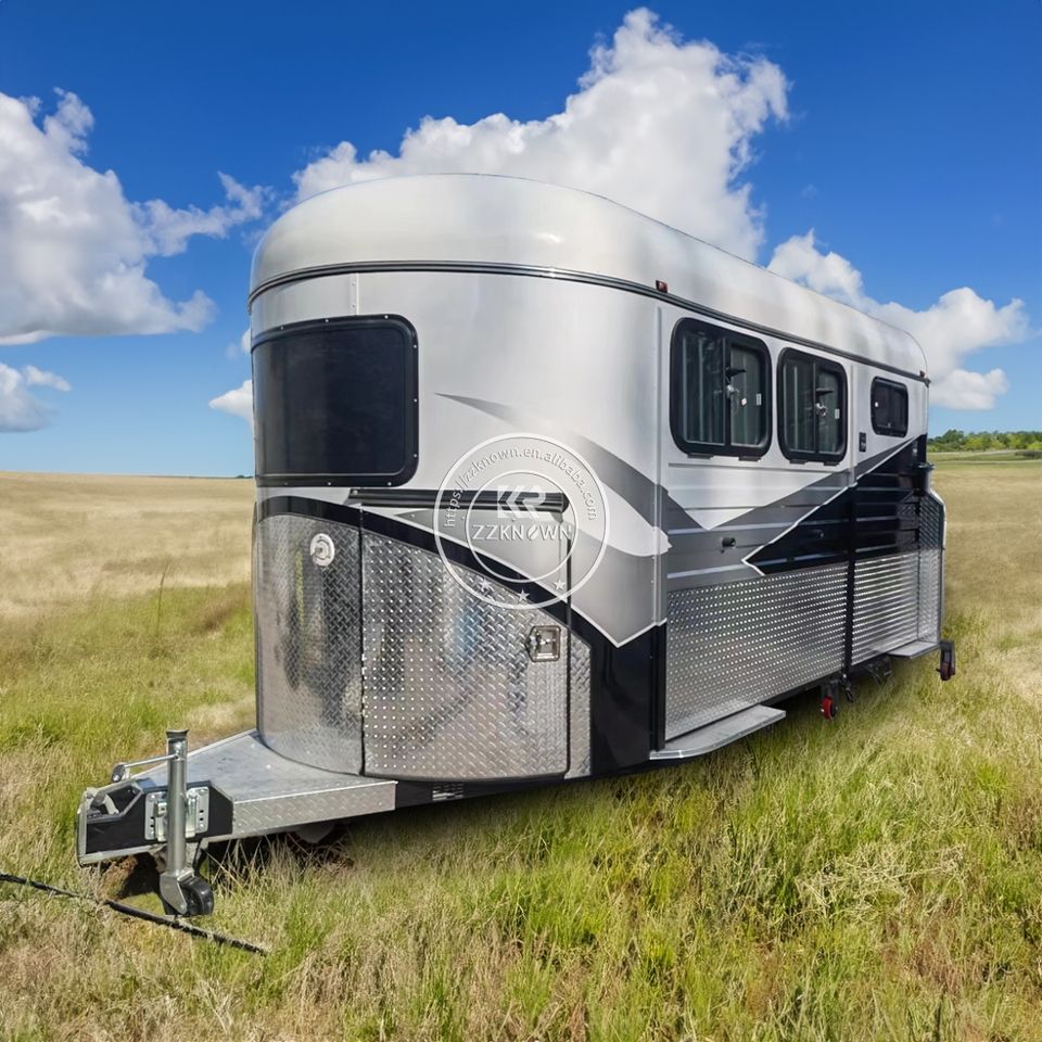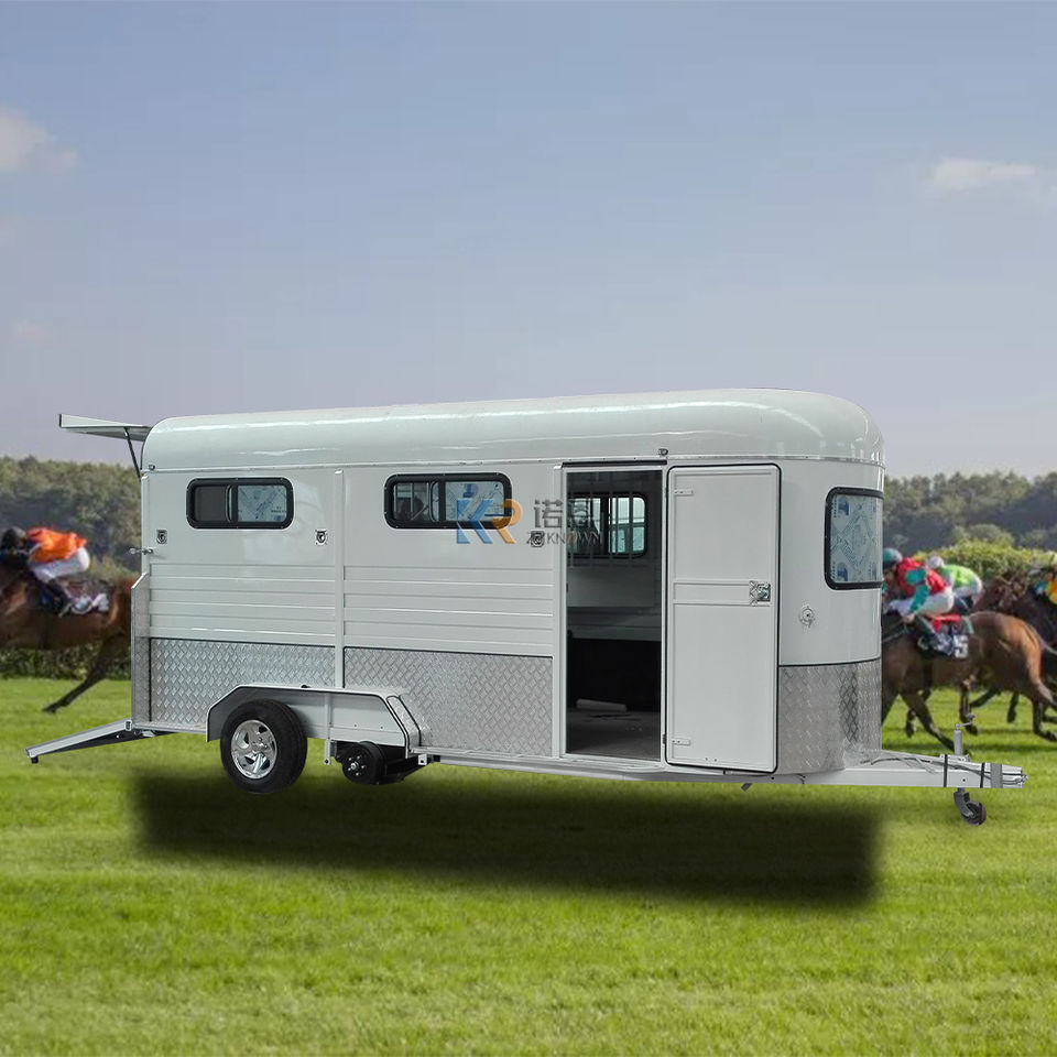 รถพ่วงบรรทุกม้าแบบดีลักซ์ 2 ตัว สำหรับรถพ่วงแบบมีล้อ ดีไซน์ใหม่ แบบขนส่งมุมเอียง กล่องอลูมิเนียม