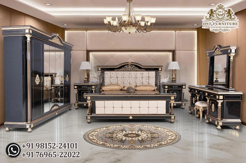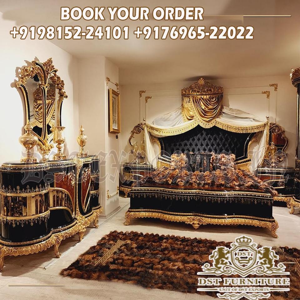 Deluxe Baroque-Style Wooden Bed Frame Set