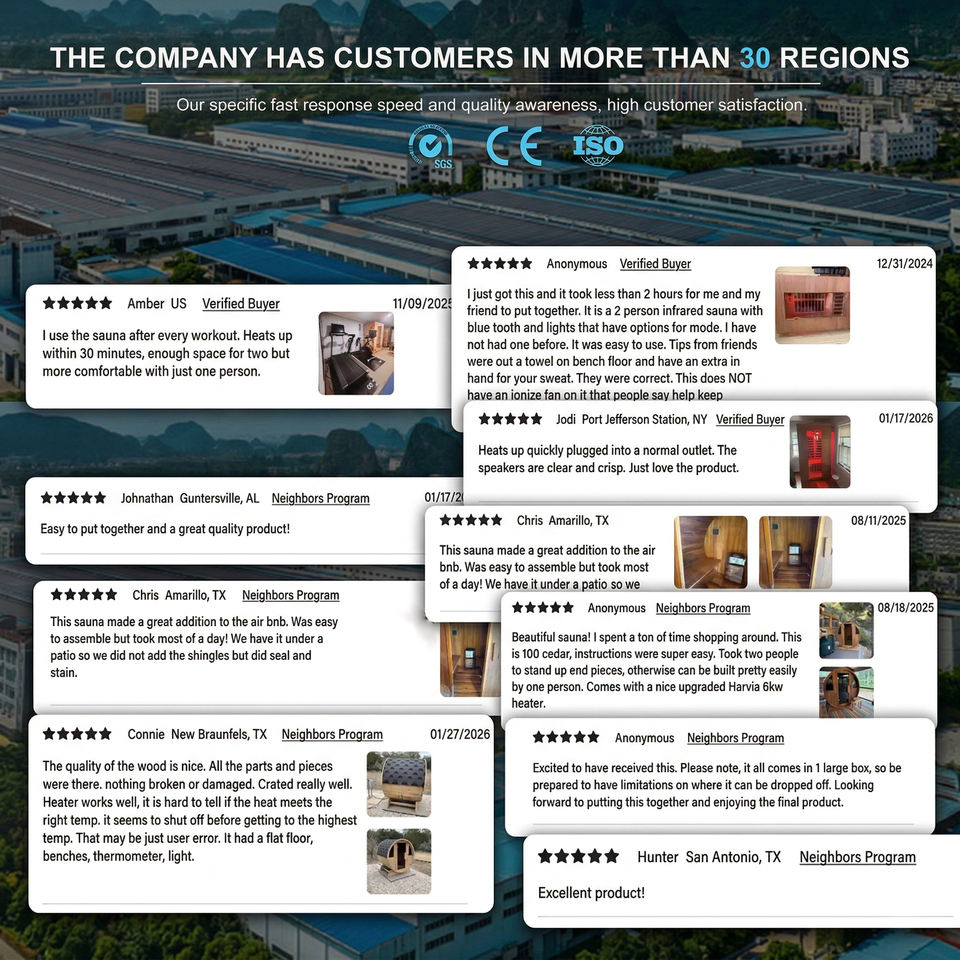 ห้องซาวน่าอินฟราเรดทันสมัยสำหรับ 3-4 คน ทำจากไม้เฮมล็อกแคนาดาคุณภาพดี พร้อมเครื่องทำความร้อนคาร์บอนไฟเบอร์ เหมาะสำหรับใช้ในวิลล่าและห้องนอน