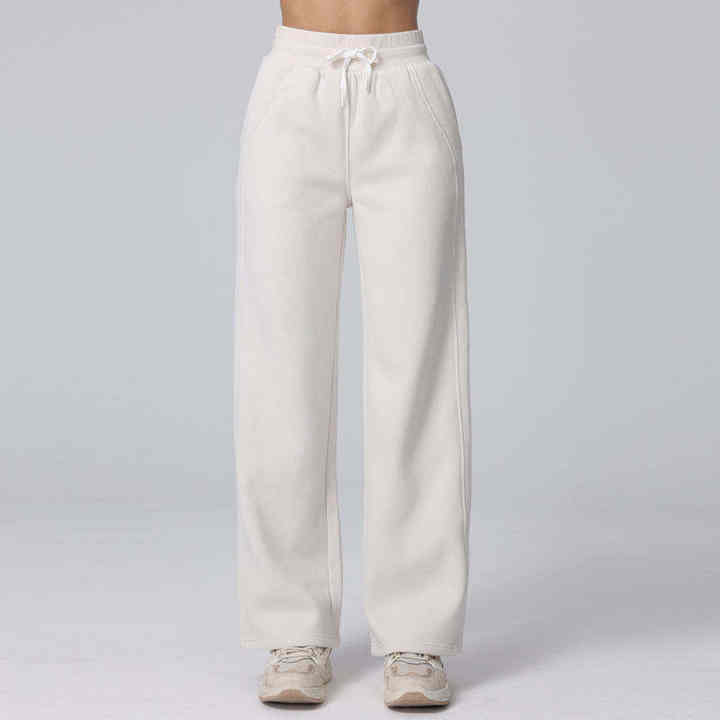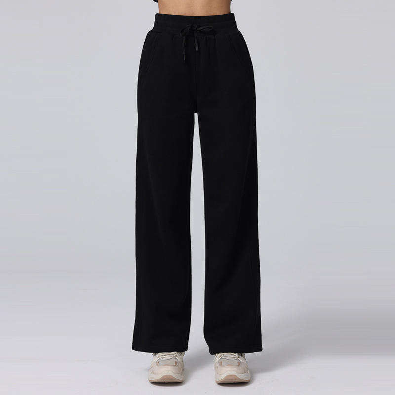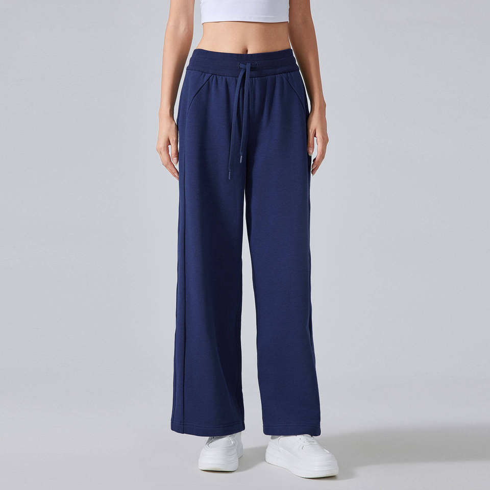 กางเกงวอร์มผ้าฟลีซเนื้อนุ่ม ระบายอากาศได้ดี สำหรับฤดูใบไม้ร่วงและฤดูหนาว ทรงหลวม สไตล์สปอร์ต เอวยางยืด ขากว้าง ผ้าฝ้าย สำหรับผู้หญิง