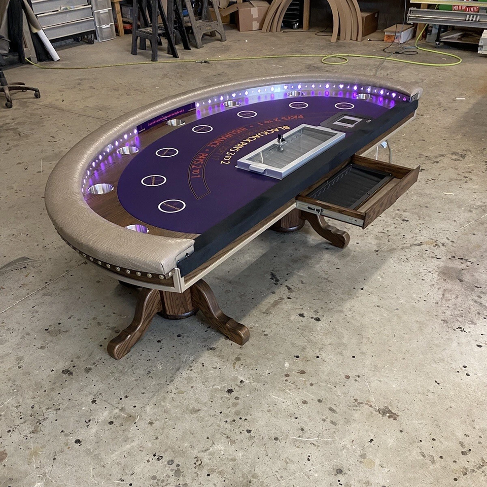 โต๊ะเล่นโป๊กเกอร์8คนผ้านิ่มไมโคร LED ดีลักซ์พร้อมพอร์ตชาร์จ USB