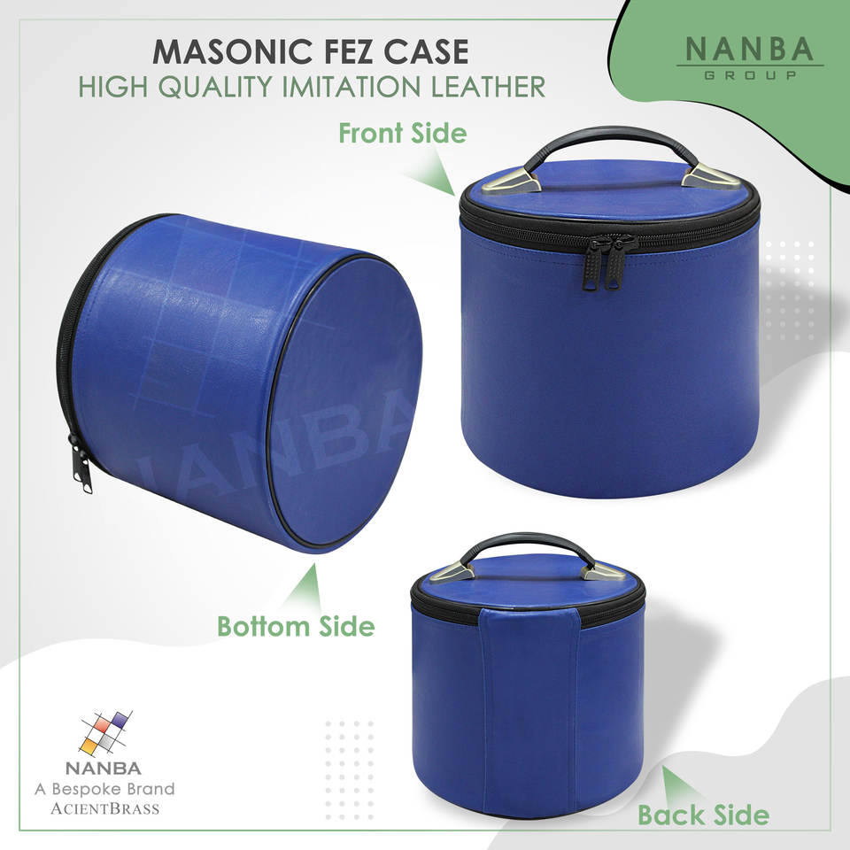 Deluxe Machine Embroidered Masonic Fez Cap Case Imitation Leather Soft Carry Bag Zipper Closure Eco-Friendly Storage Display Box