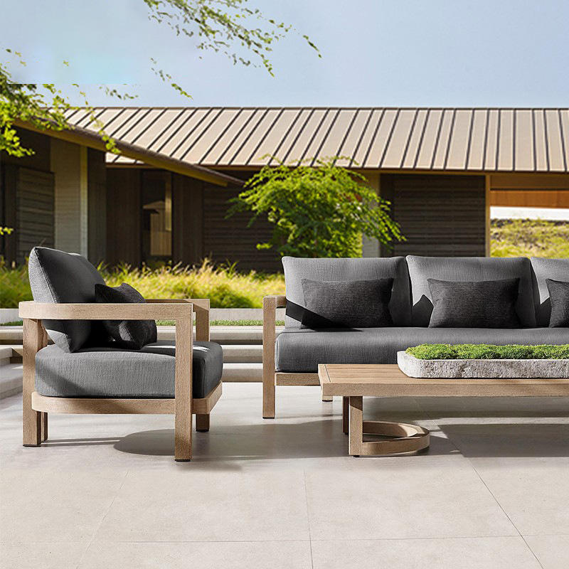 ชุดเฟอร์นิเจอร์ไม้สักทันสมัยแบบดีลักซ์กันน้ำโซฟาระเบียงกลางแจ้งสำหรับโรงแรมห้องนั่งเล่นห้องนอนสวนอพาร์ทเมนต์ฮอลล์