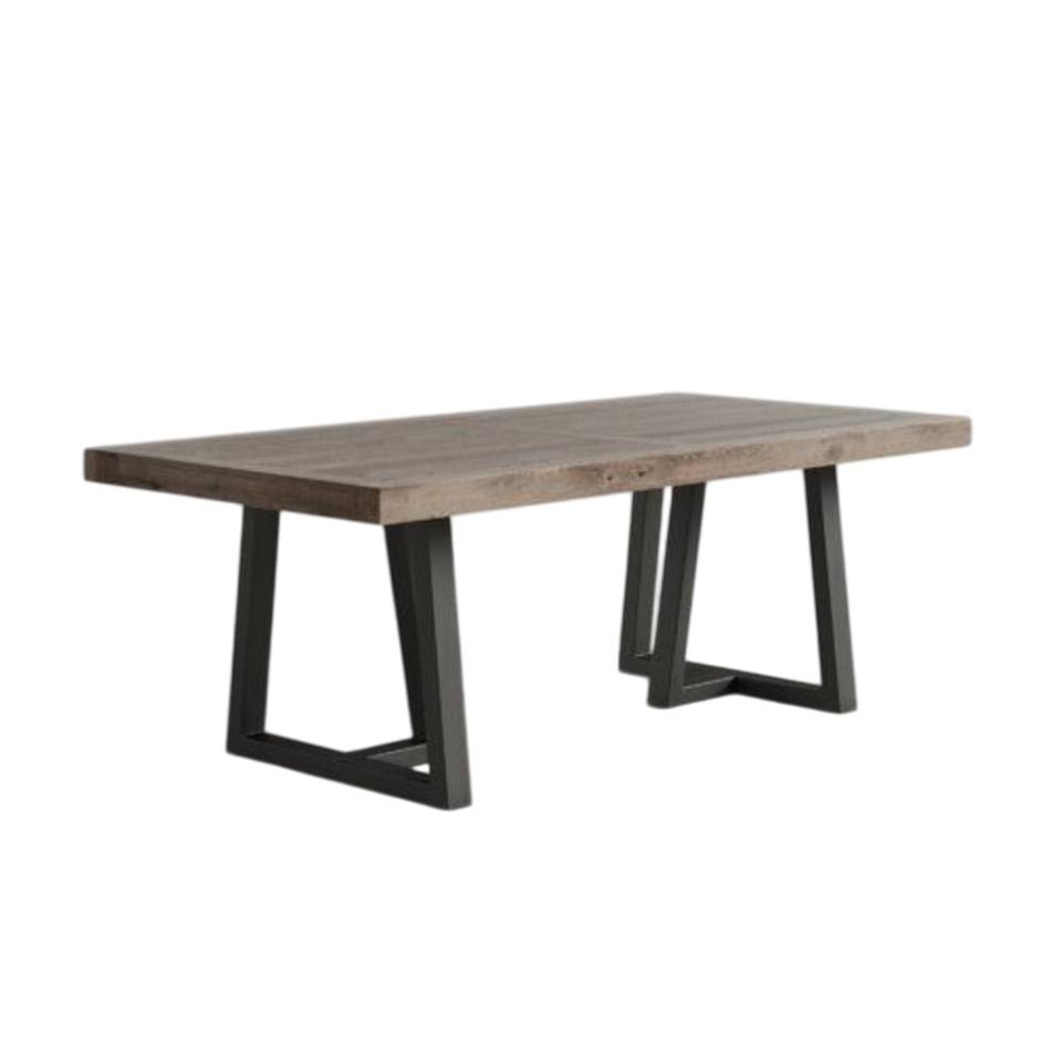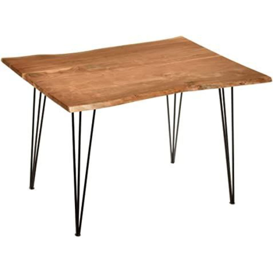 โต๊ะรับประทานอาหารไม้อะคาเซียพร้อมกิ๊บขาโลหะสีดำโต๊ะกลางสำหรับบ้านและร้านอาหาร