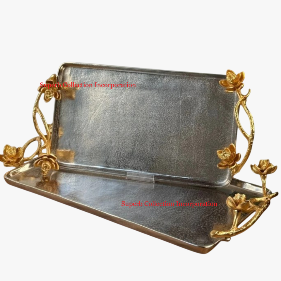 ถาดเสิร์ฟขนมโลหะสีทองมีคุณภาพระดับดีลักซ์ถาดเสิร์ฟของหวานดีไซน์โบราณเครื่องครัวเน้นดอกไม้อุปกรณ์เสริมเครื่องครัวลดราคา