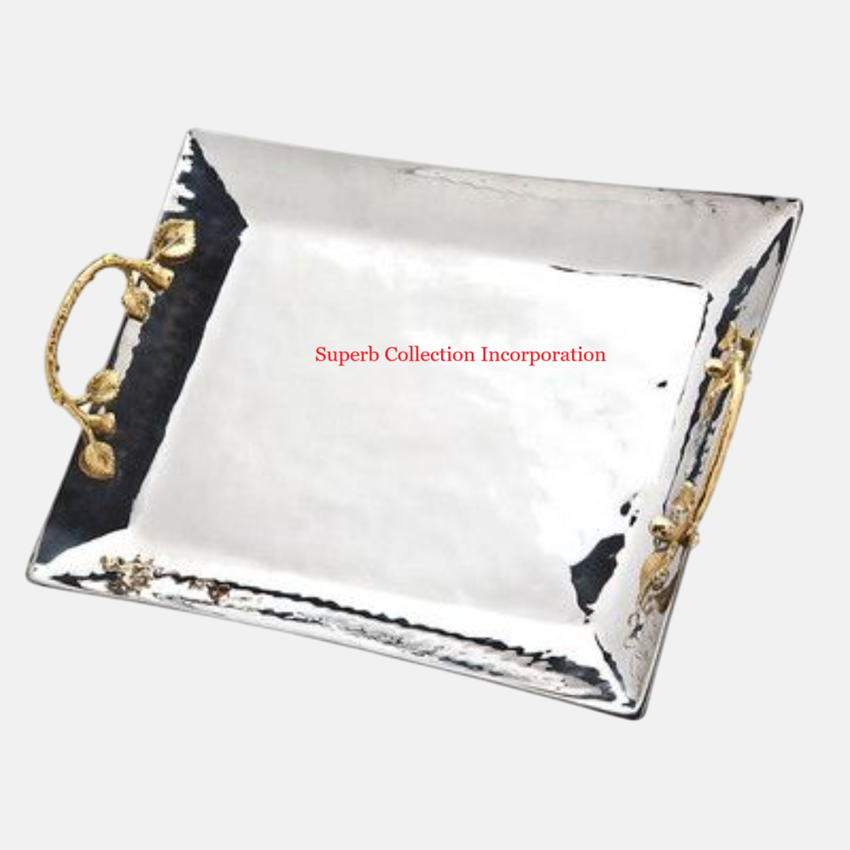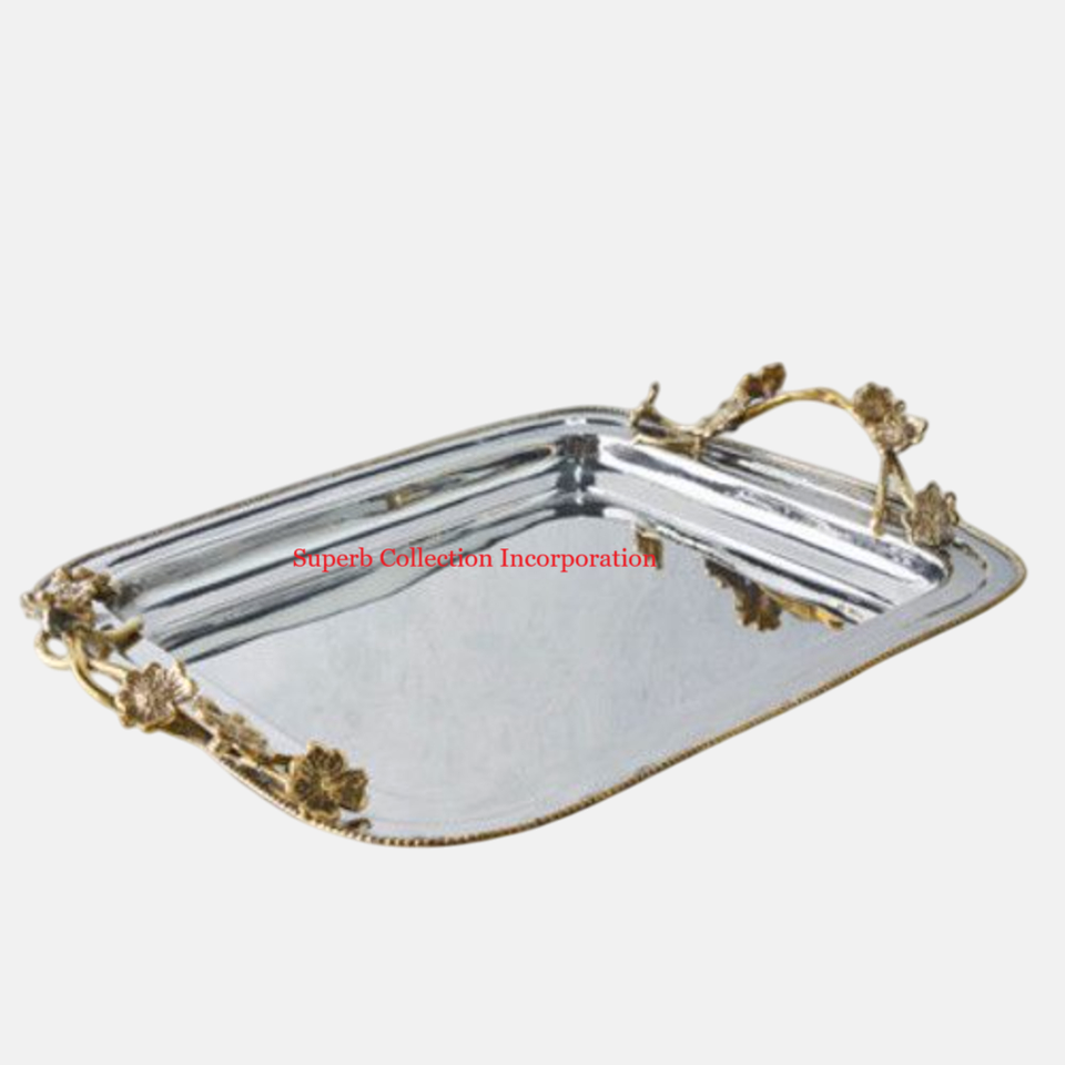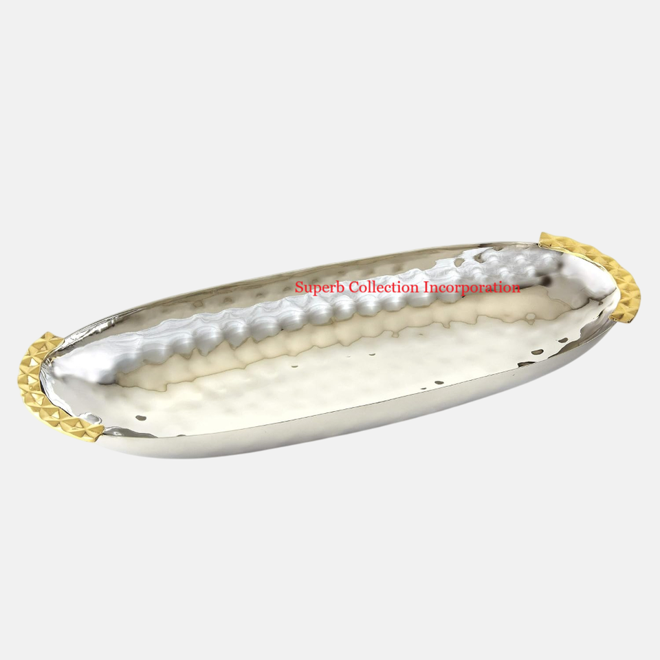 ถาดโลหะทรงรีพร้อมด้ามจับสีทองดีไซน์เนอร์สำหรับบ้านโรงแรมห้องครัวดีลักซ์
