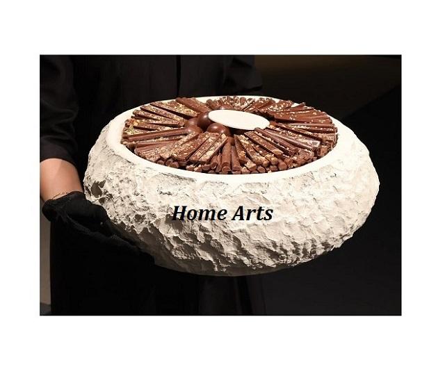 ชามช็อคโกแลตอลูมิเนียมสีเบจสำหรับใช้ในอาหารเย็นโรงแรมชามช็อคโกแลตรูปทรงกลมหรูหรา