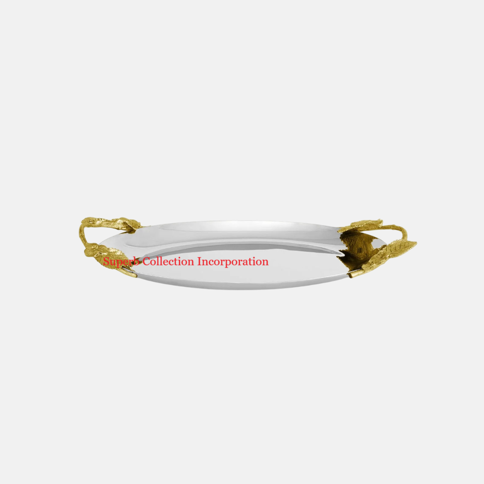 ถาดเสิร์ฟขนมสเตนเลสมีด้ามจับลายดอกไม้อุปกรณ์เสริมสำหรับโรงแรม