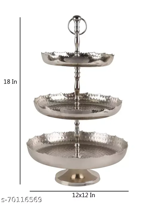 แท่นวางเค้กขนมหวานทรงกลมทำจากเงินดีไซน์ทันสมัยพร้อมขาตั้งกระจกขัดเงาขนาดพิเศษ