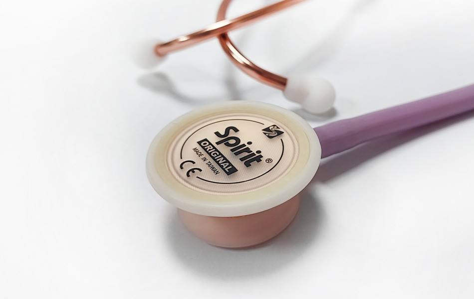 ชุดหูฟังสเต็ทโทสโคปแบบแมนนวลสองหัวสแตนเลสสำหรับผู้ใหญ่สีโรสโกลด์ SGS tw Spirit clinic Class I ISO