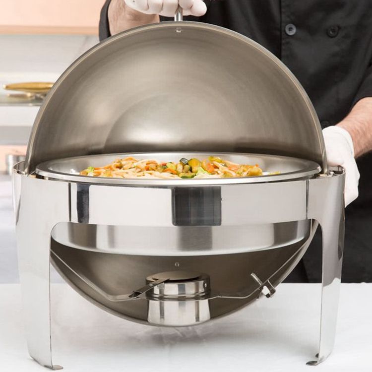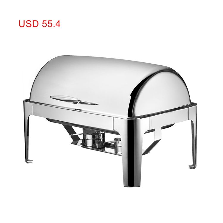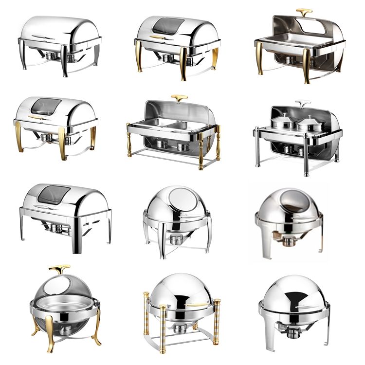 ชุดบุฟเฟ่ต์สแตนเลสดีลักซ์จาน chafing บนม้วนพร้อมหน้าต่าง