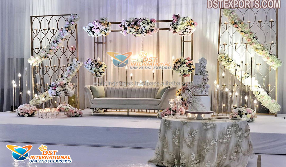 เทียนตกแต่งงานแต่งงานแบบหรูหราผนังเวทีรูปหัวใจดีไซน์เนอร์เทียนโลหะประดับผนังเพชร