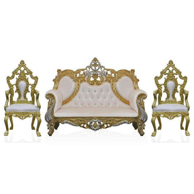 ชุดโซฟามหาราชาแต่งงานสุดหรู,ชุดโซฟาสีขาวทองสำหรับงานแต่งงานสไตล์อินเดียชุดเฟอร์นิเจอร์แกะสลักโลหะ