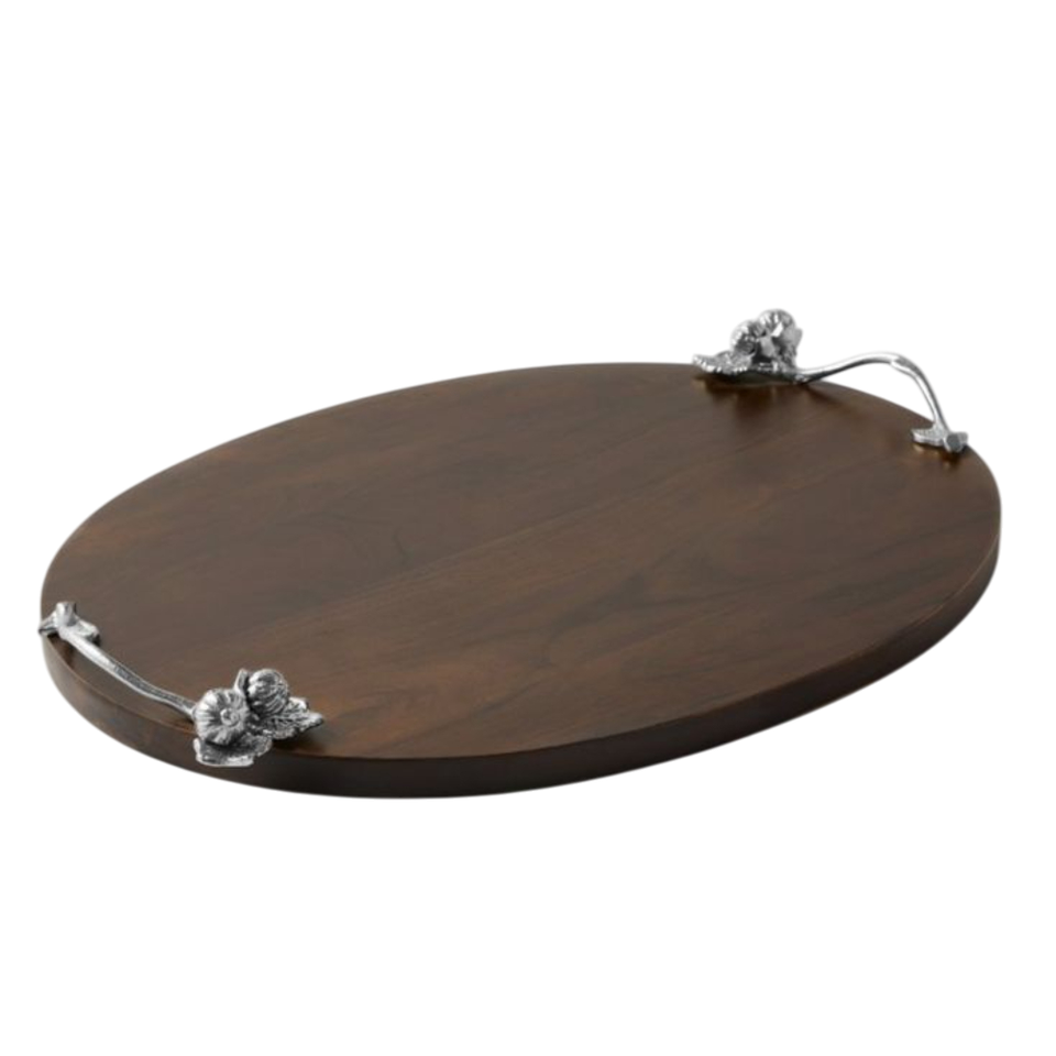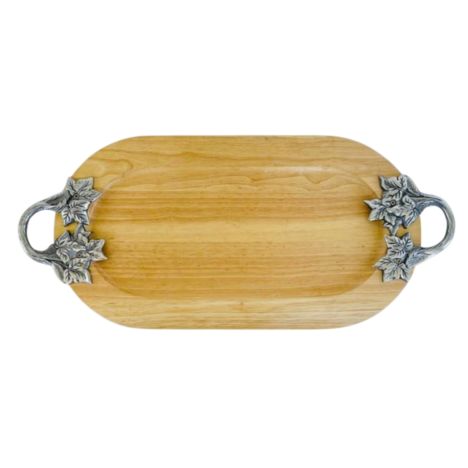 ถาดเสิร์ฟไม้แบบหรูหราอุปกรณ์ร้านอาหารโบราณดีไซน์ใบไม้เครื่องเงินอุปกรณ์ร้านอาหารแบบปรับแต่งได้ราคาถูกสำหรับใช้ในการจัดเลี้ยง