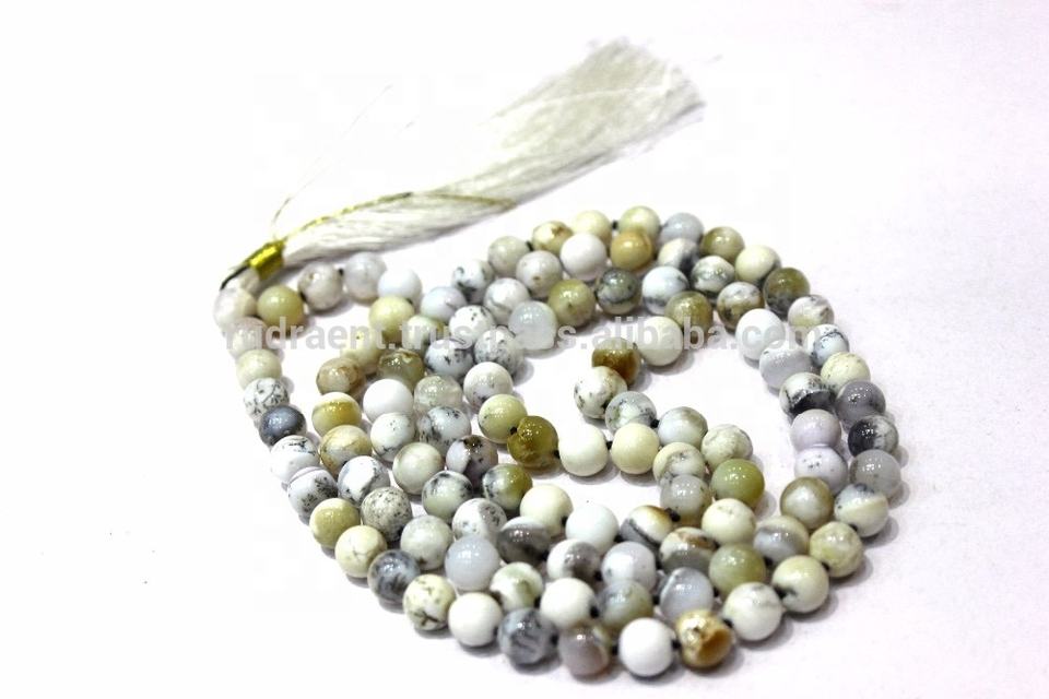 สร้อยคอทำมือจากอินเดียประดับด้วยลูกปัดอะเกตเดนไดรติกขนาด 8 มม. สีขาว พร้อมพู่ห้อยแบบผูกปม ของขวัญที่ได้รับการรับรอง เหมาะสำหรับงานปาร์ตี้