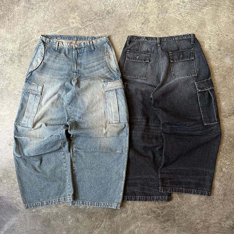 กางเกงยีนส์ทรงหลวมสไตล์หลวมสำหรับผู้ชายกางเกงยีนส์ทรงหลวมขนาดออกแบบได้ตามต้องการ