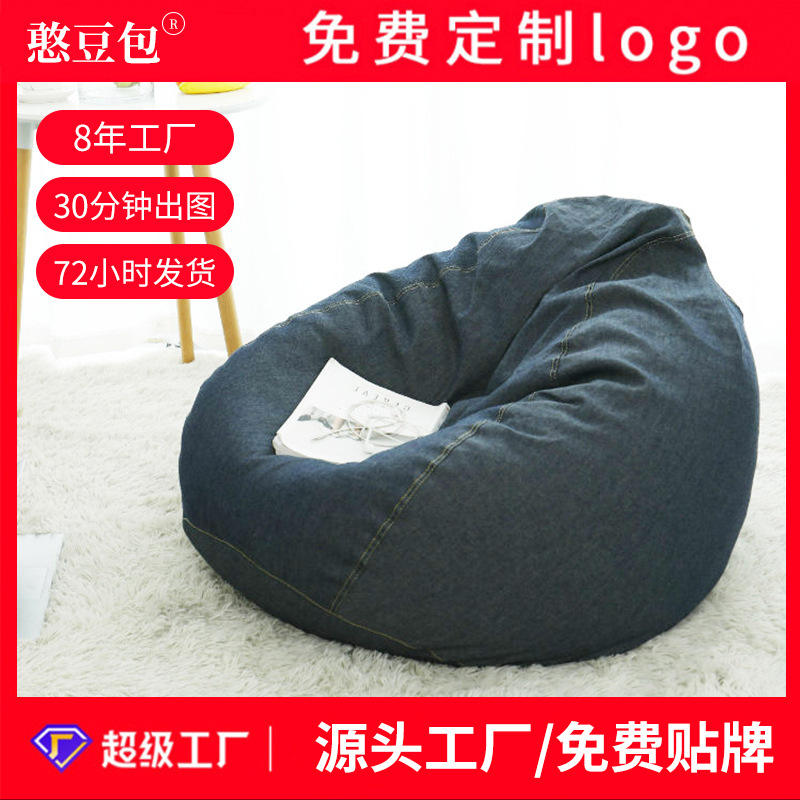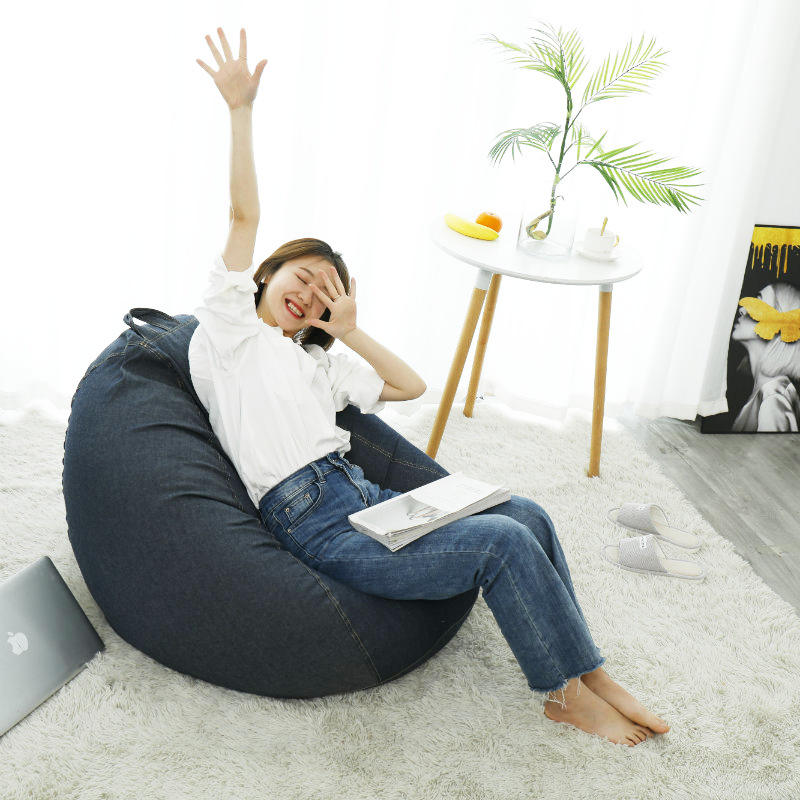 โซฟาบีนแบ็กผ้าเดนิมสำหรับ 1 คน ถอดซักได้ นุ่มสบาย เหมาะสำหรับห้องนอน ระเบียง ห้องทาทามิ สีน้ำเงินเดนิม