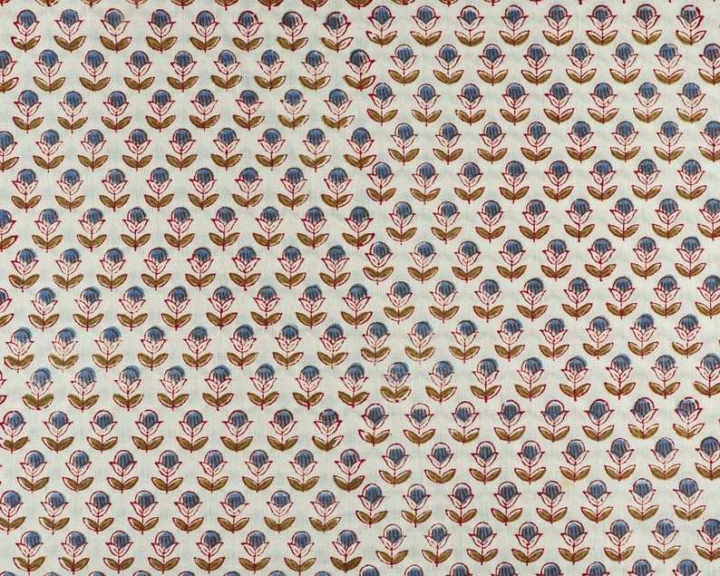 ผ้าเดนิมผ้าฝ้ายแท้พิมพ์ลายดอกไม้สีฟ้าและสีเขียวสไตล์อินเดียเสื้อผ้าสตรี100% ออกใหม่