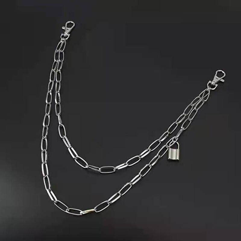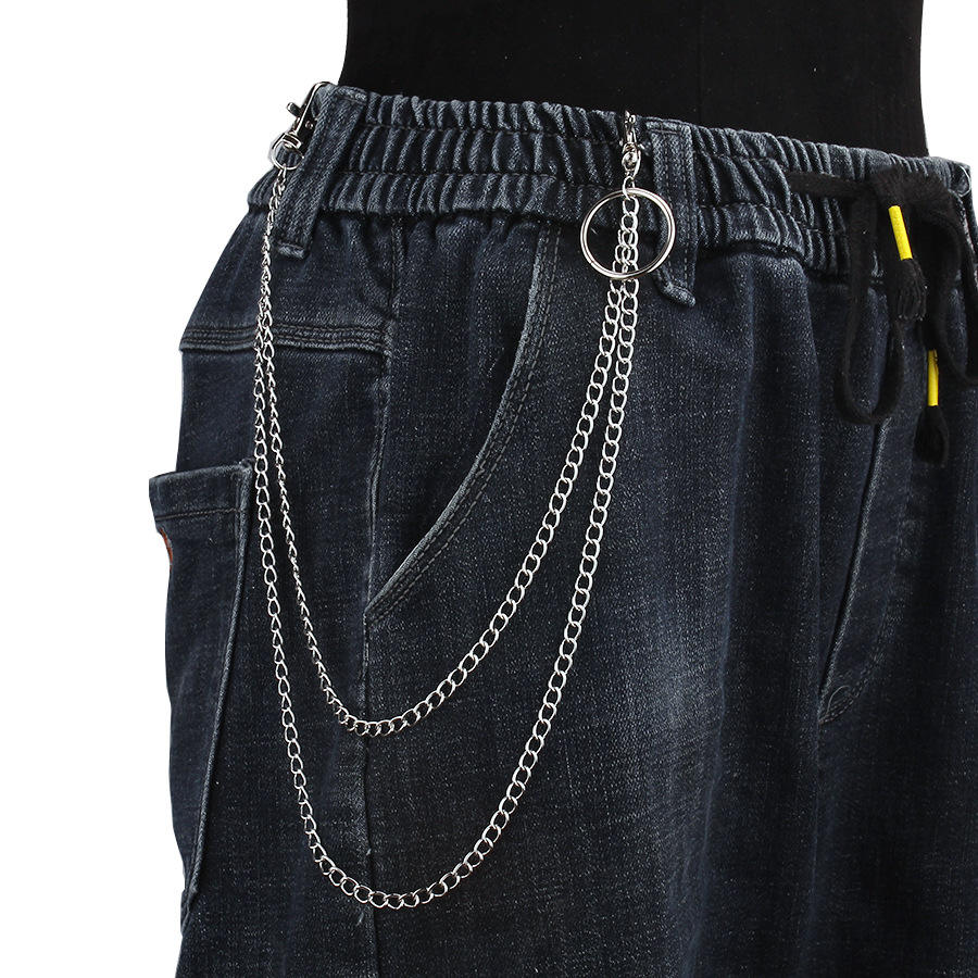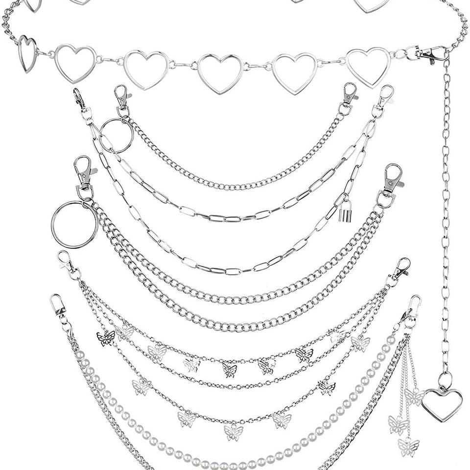 เข็มขัดโซ่เดนิมแบบหลายชั้น สไตล์ฮิปฮอป ร็อค พร้อมจี้ผีเสื้อ สำหรับผู้ใหญ่ หัวเข็มขัดโลหะผสม