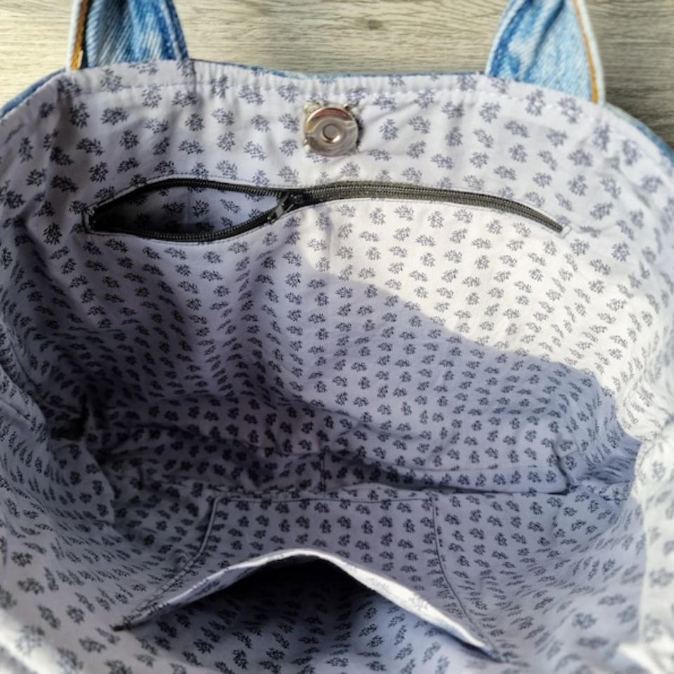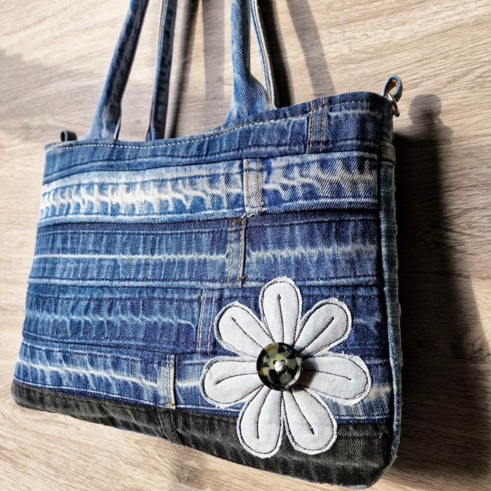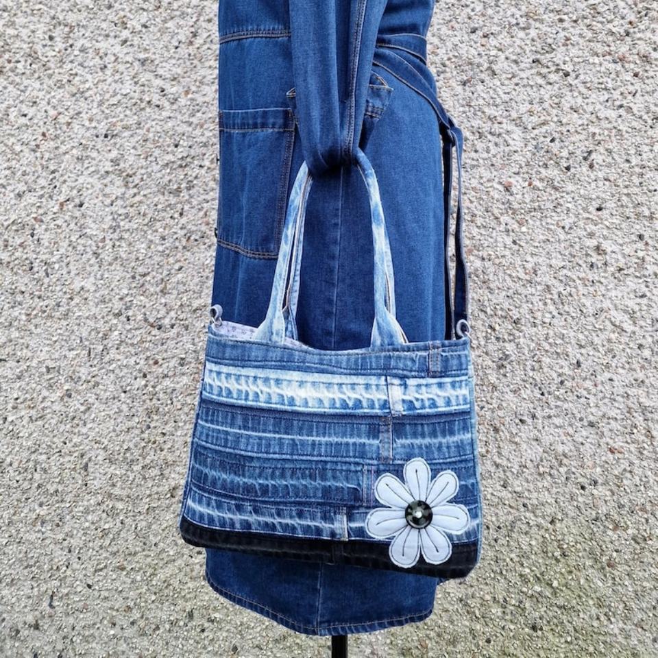 กระเป๋าโท้ทผ้ายีนส์ลายดอกไม้ผ้าเดนิมกระเป๋าถือแฟชั่นสีฟ้าสำหรับสุภาพสตรีกระเป๋าสะพายไหล่สำหรับช็อปปิ้งในวันหยุดสุดสัปดาห์กระเป๋าโท้ทสไตล์คาวบอยชายหาด