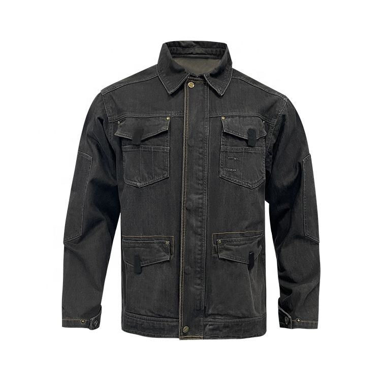 แจ็กเก็ตผ้ายีนส์สำหรับผู้ชายตัดเย็บแบบทันสมัยและทรงลำลองแขนยาวและกระดุมด้านหน้าสไตล์สตรีท