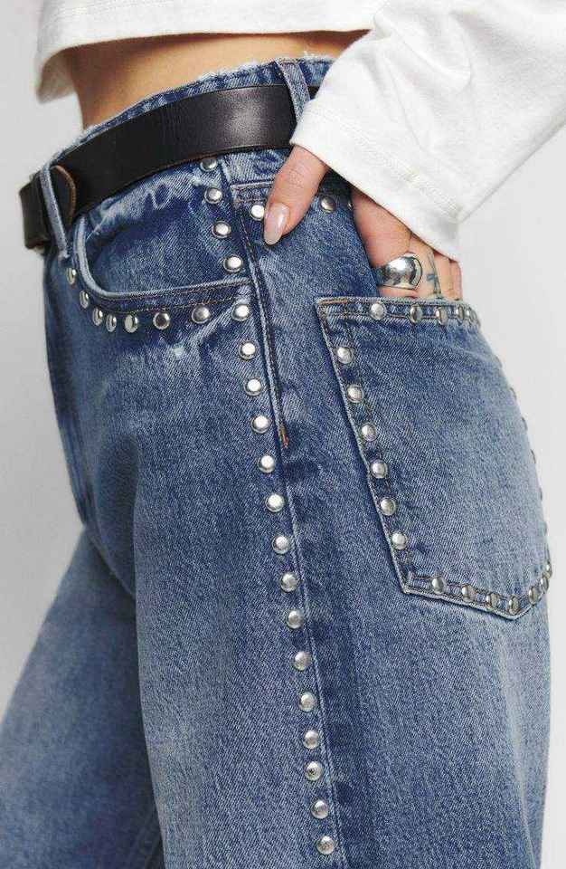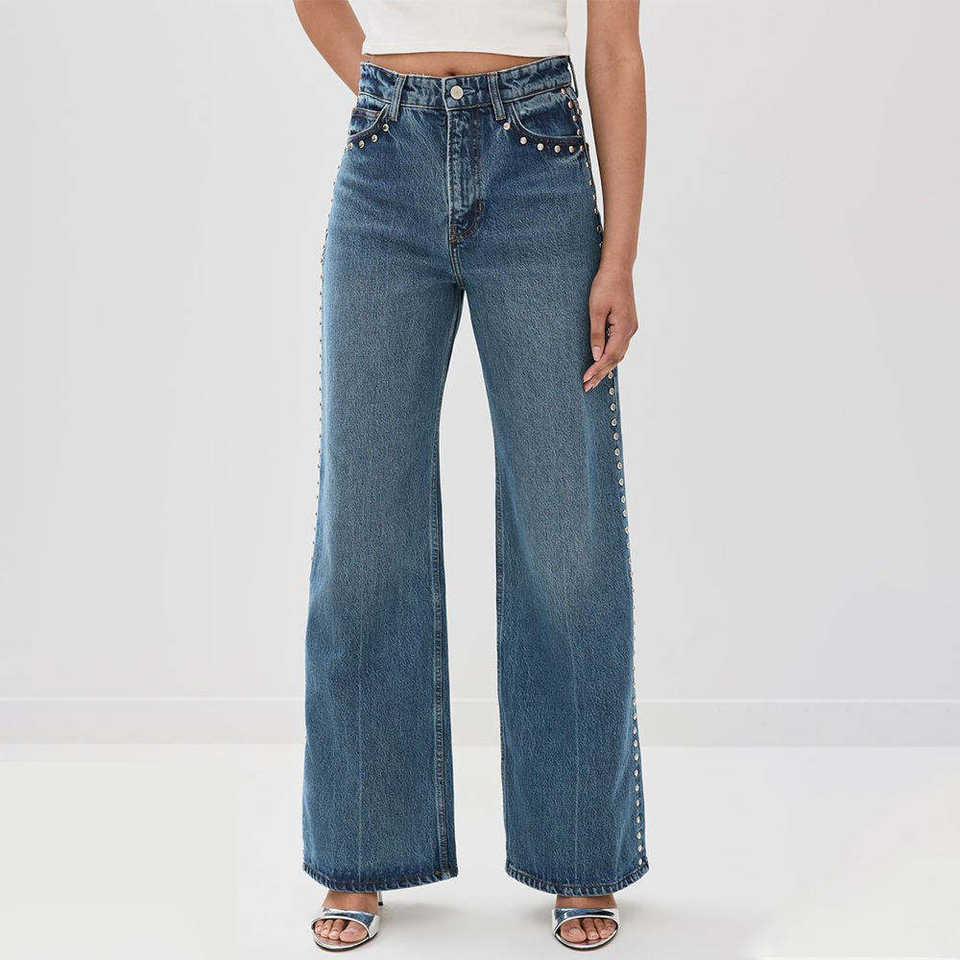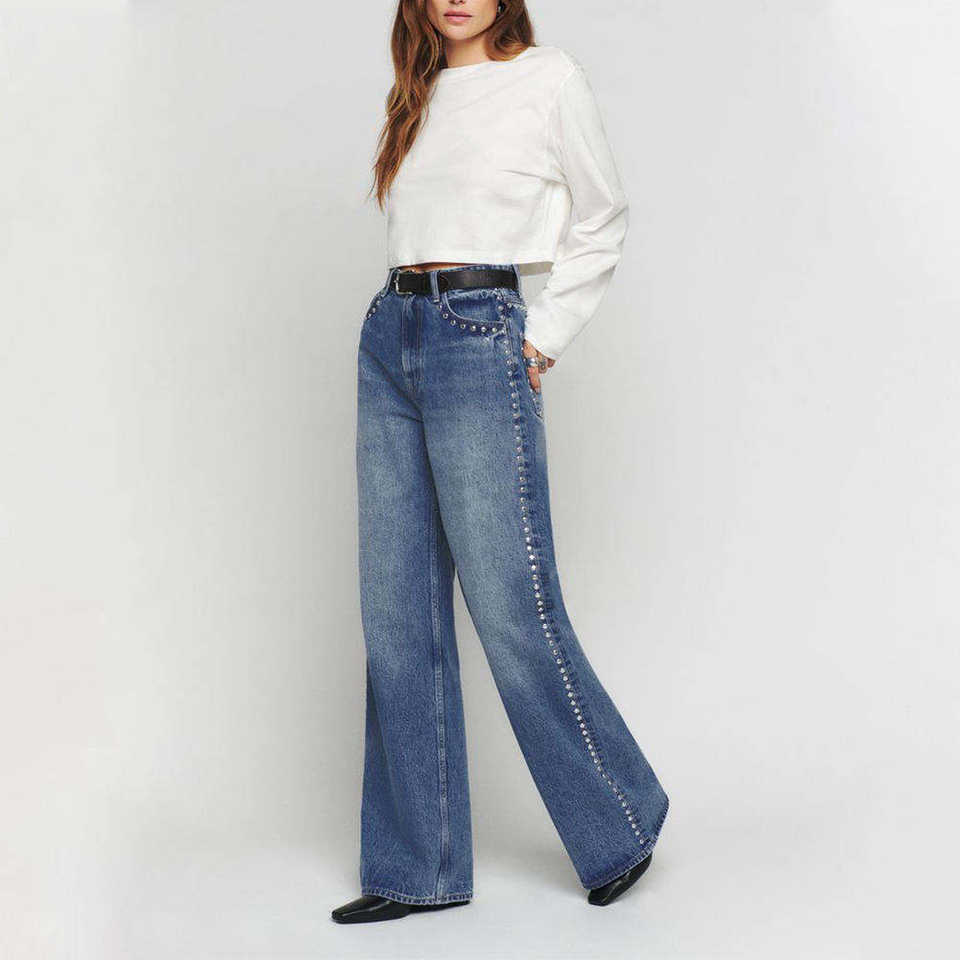 กางเกงยีนส์เดนิมผู้หญิงทรงวินเทจ ทรงสลิม ทรงตรง ทรงหลวม แต่งคริสตัล สไตล์สตรีทแฟชั่น