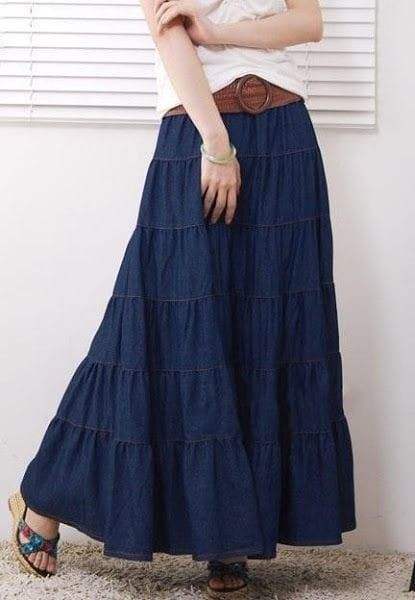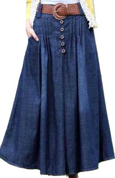 กระโปรงผ้ายีนส์ยาวกระโปรงด้านหน้าผ่าข้างสไตล์ลำลองแบบมีสไตล์ประจำฤดูกาลแฟชันสุดชิค
