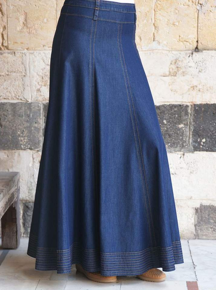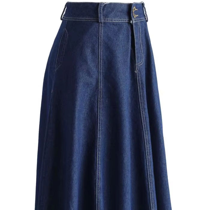 กระโปรงผ้ายีนส์ยาวกระโปรงด้านหน้าผ่าข้างสไตล์ลำลองแบบมีสไตล์ประจำฤดูกาลแฟชันสุดชิค