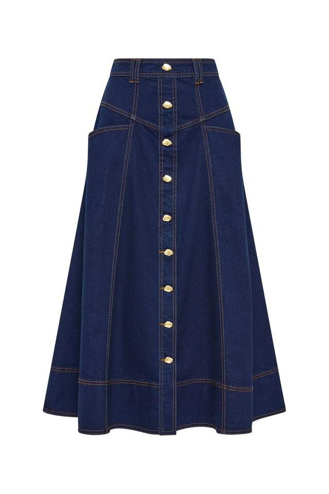 กระโปรงยาวผ้ายีนส์สไตล์โบฮีเมียนกระโปรงยาวสไตล์โบฮีเมียนสำหรับใส่ในตู้เสื้อผ้าเป็นแรงบันดาลใจ