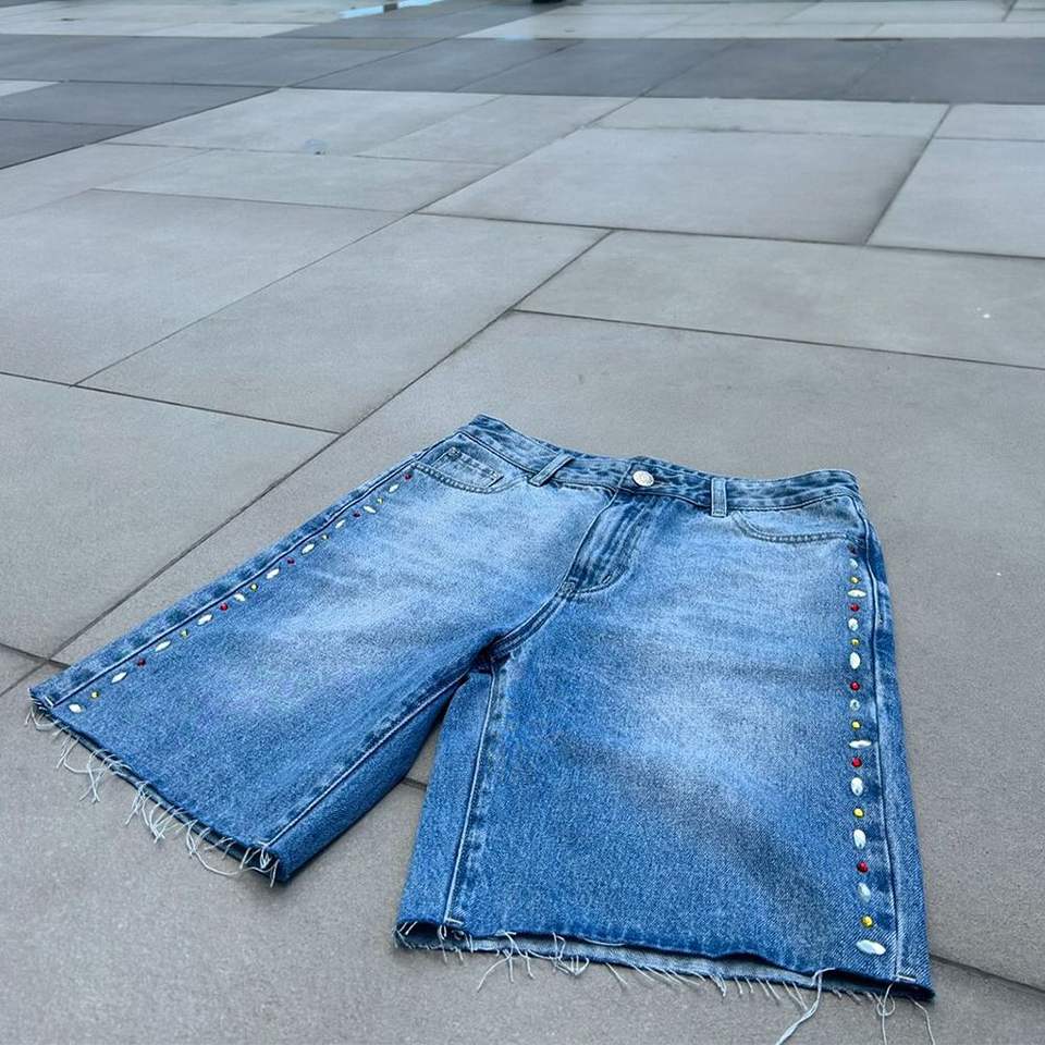 กางเกงขาสั้นผ้าเดนิมเบอร์มิวดาสำหรับผู้ชายไซส์พิเศษเป็นมิตรต่อสิ่งแวดล้อม