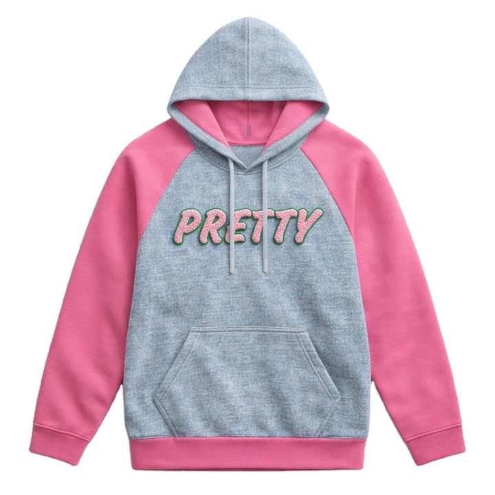 เสื้อฮู้ดแขนแร็กแลนลายยีนส์สำหรับสาวๆ ชุดนักเรียนหญิงกรีก สีชมพูและสีเขียว เสื้อสเวตเชิ้ตสำหรับนักศึกษาหญิง ชุดนักเรียนหญิงกรีก