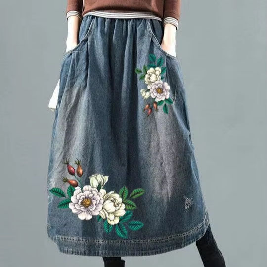 key words:Denim long printed split skirt
