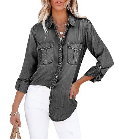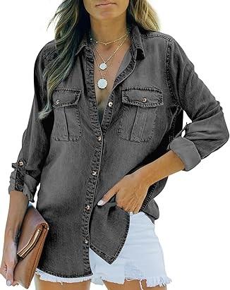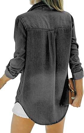 เสื้อเชิ้ตเดนิมผู้หญิง สไตล์ซันเฟด แอซิดวอช ปกคอพับ ทรงหลวม ระบายอากาศได้ดี แขนยาว สำหรับผู้หญิง