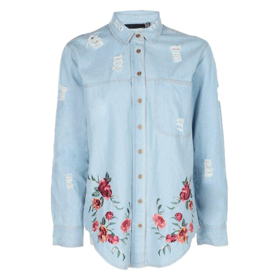 เสื้อเชิ้ตเดนิมสำหรับผู้หญิง สีน้ำเงิน ทรงสั้น รับทำโลโก้ ขายส่ง เสื้อเชิ้ตผ้าฝ้ายยีนส์สำหรับสุภาพสตรี ODM