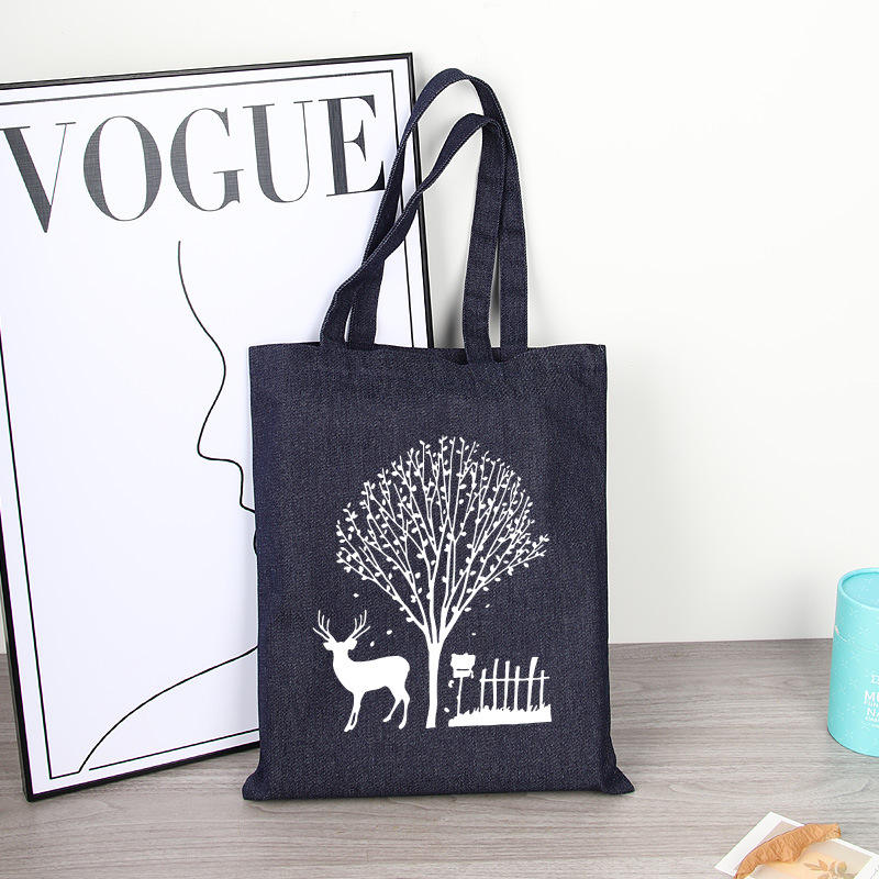 กระเป๋าช้อปปิ้งสะพายไหล่ผ้าแคนวาสแบบสะพายไหล่เป็นมิตรต่อสิ่งแวดล้อมใช้ซ้ำได้สำหรับเด็กผู้หญิง