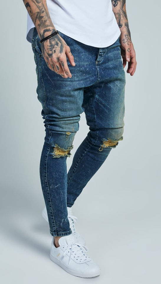 กางเกงยีนส์ผ้ายืดแบบบางสำหรับผู้ชายกางเกงยีนส์ทรงสลิมฟิตกางเกงยีนส์ขาดระบายอากาศ