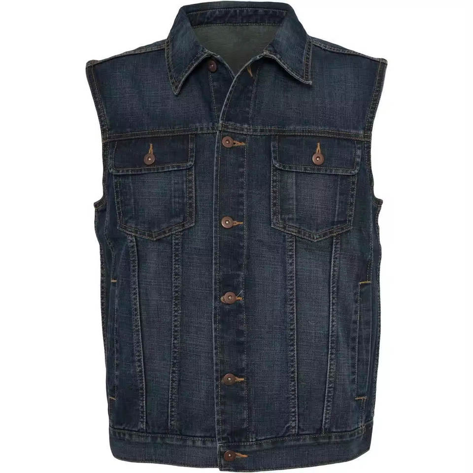 เสื้อกั๊กผ้าเดนิมสำหรับผู้ชายเสื้อแจ็กเก็ตผ้าเดนิมสำหรับใส่สบายระบายอากาศได้ดีดีไซน์พิเศษ
