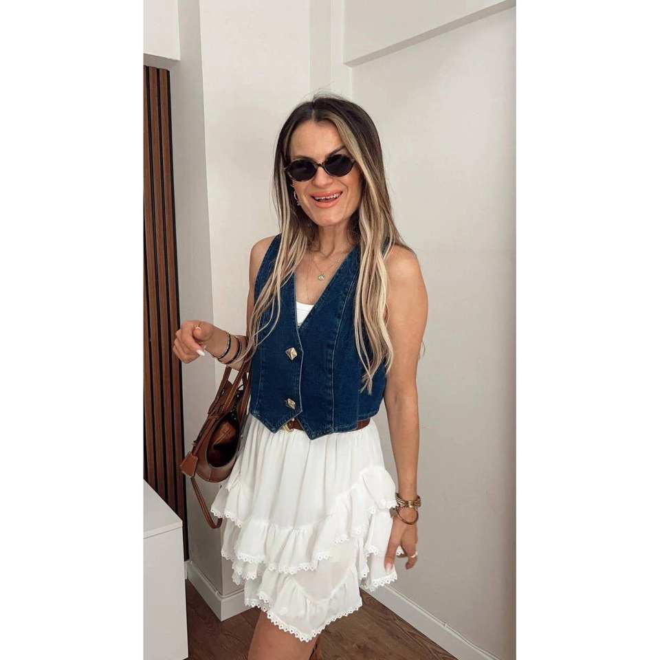 เสื้อกั๊กยีนส์แขนกุดสำหรับผู้หญิง, เสื้อผ้าฝ้าย100% แขนกุดสไตล์ลำลองทรงคลาสสิก
