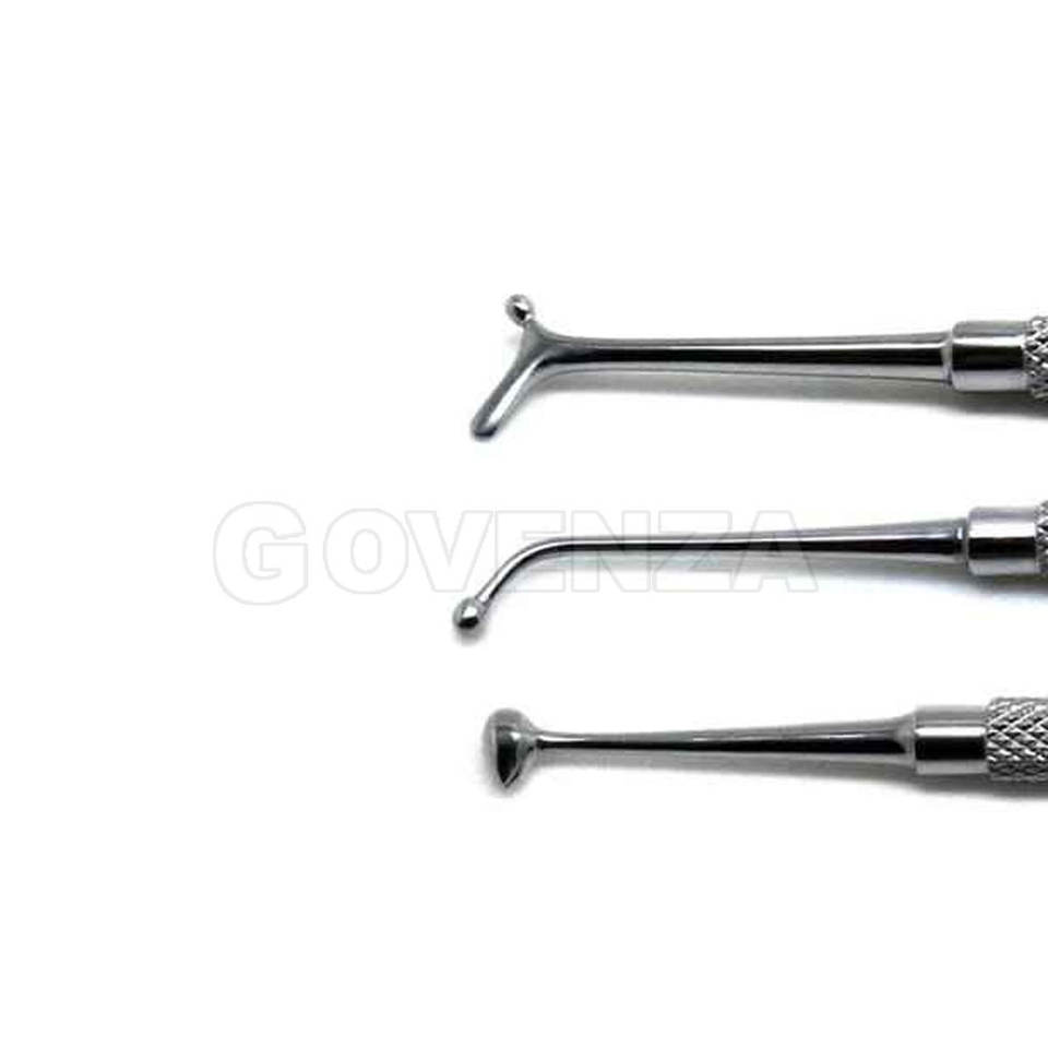 ชุดเครื่องมือขัดฟันแบบแมนนวล 3 ชิ้น ทำจากสแตนเลสสตีล ปลายสองด้าน สำหรับอัลมาลกัมและวัสดุอุดฟันคอมโพสิต พร้อมด้ามจับตามหลักสรีรศาสตร์